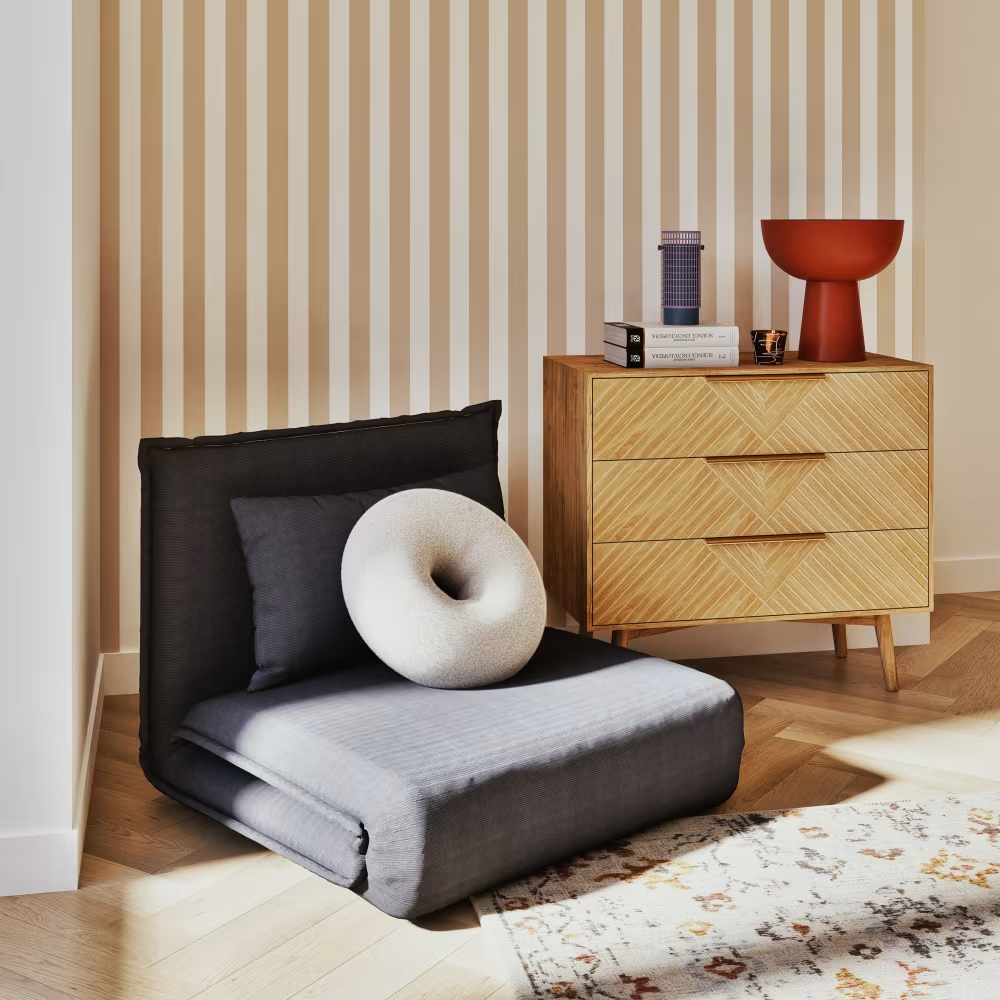 Lightweight yet sturdy, it moves easily between rooms — transforming effortlessly from a reading nook to a guest bed, a lounge chair to a cozy escape.